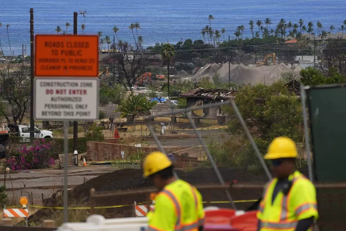 FILE - Crews work to clean debris and repave roads, Saturday, July 6, 2024, in Lahaina, Hawaii. (AP Photo/Lindsey Wasson,File)