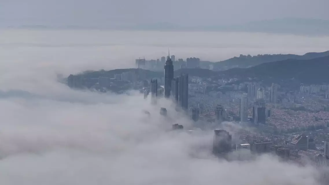 Endless clouds rolled over the urban area of Yantai City of east China's Shandong Province on Sunday after a bout of rain, transforming the city into a fairyland, as skyscrapers were shrouded in clouds and mist, creating spectacular scenes.