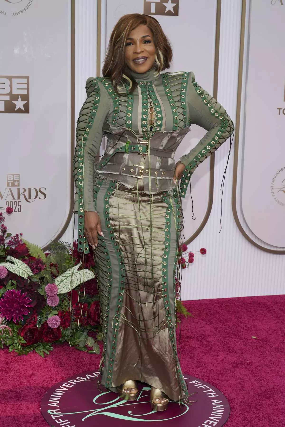Mya arrives at the BET Awards on Monday, June 9, 2025, at the Peacock Theater in Los Angeles. (Photo by Jordan Strauss/Invision/AP)