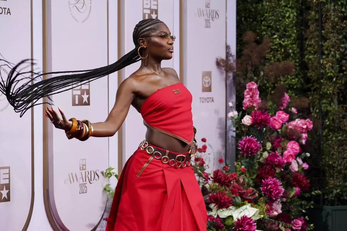 Andra Day arrives at the BET Awards on Monday, June 9, 2025, at the Peacock Theater in Los Angeles. (Photo by Jordan Strauss/Invision/AP)