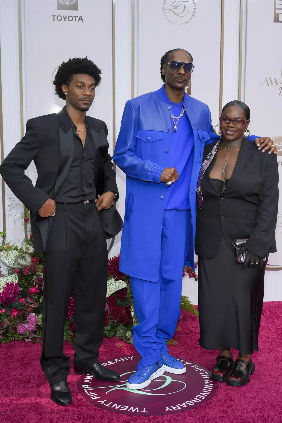 Jonathan Daviss, from left, Snoop Dogg, and Cori Broadus arrive at the BET Awards on Monday, June 9, 2025, at the Peacock Theater in Los Angeles. (Photo by Jordan Strauss/Invision/AP)