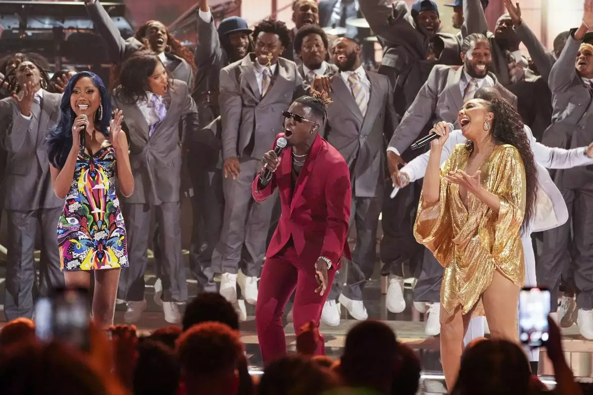 Muni Long, from left, Jamal Roberts, and Tamar Braxton perform during the BET Awards on Monday, June 9, 2025, at the Peacock Theater in Los Angeles. (AP Photo/Chris Pizzello)