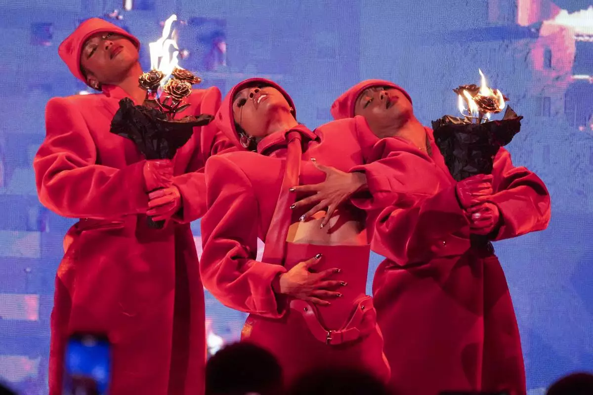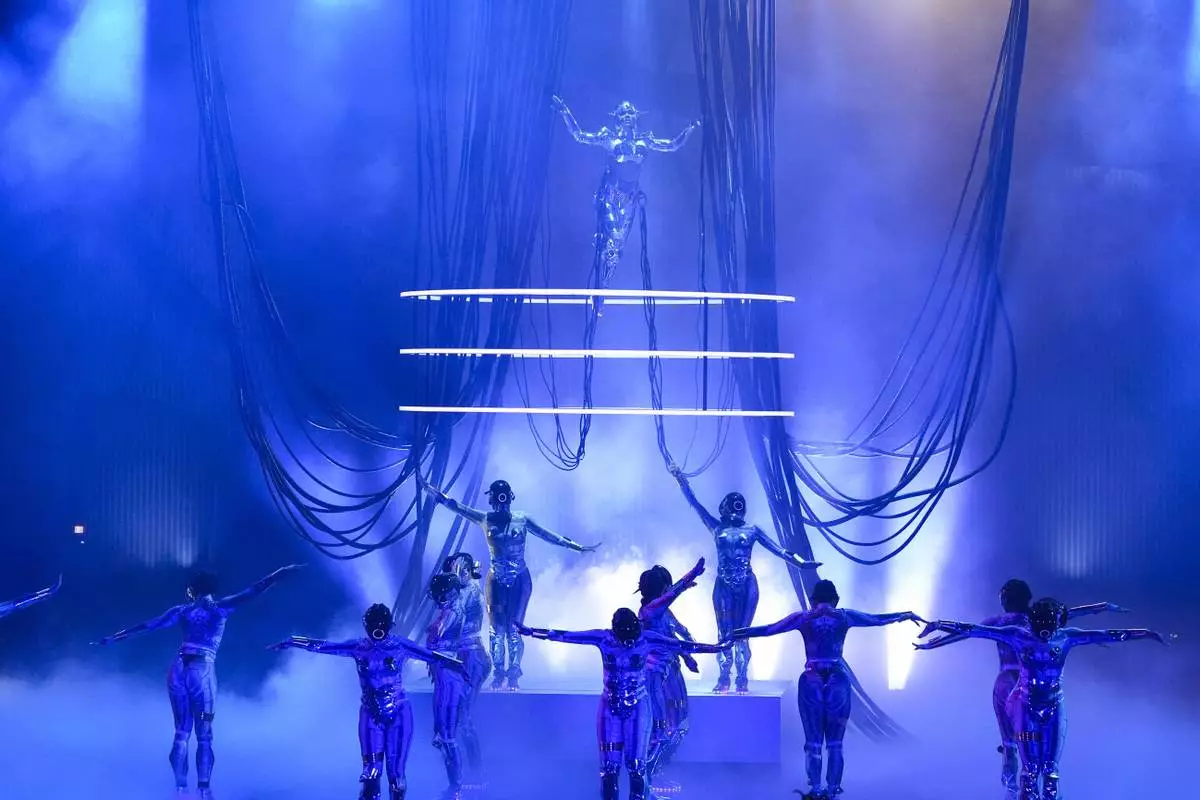 Teyana Taylor, center, performs during the BET Awards on Monday, June 9, 2025, at the Peacock Theater in Los Angeles. (AP Photo/Chris Pizzello)