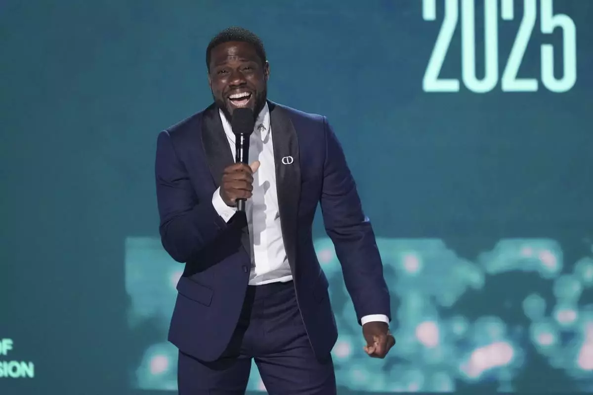 Host Kevin Hart speaks during the BET Awards on Monday, June 9, 2025, at the Peacock Theater in Los Angeles. (AP Photo/Chris Pizzello)