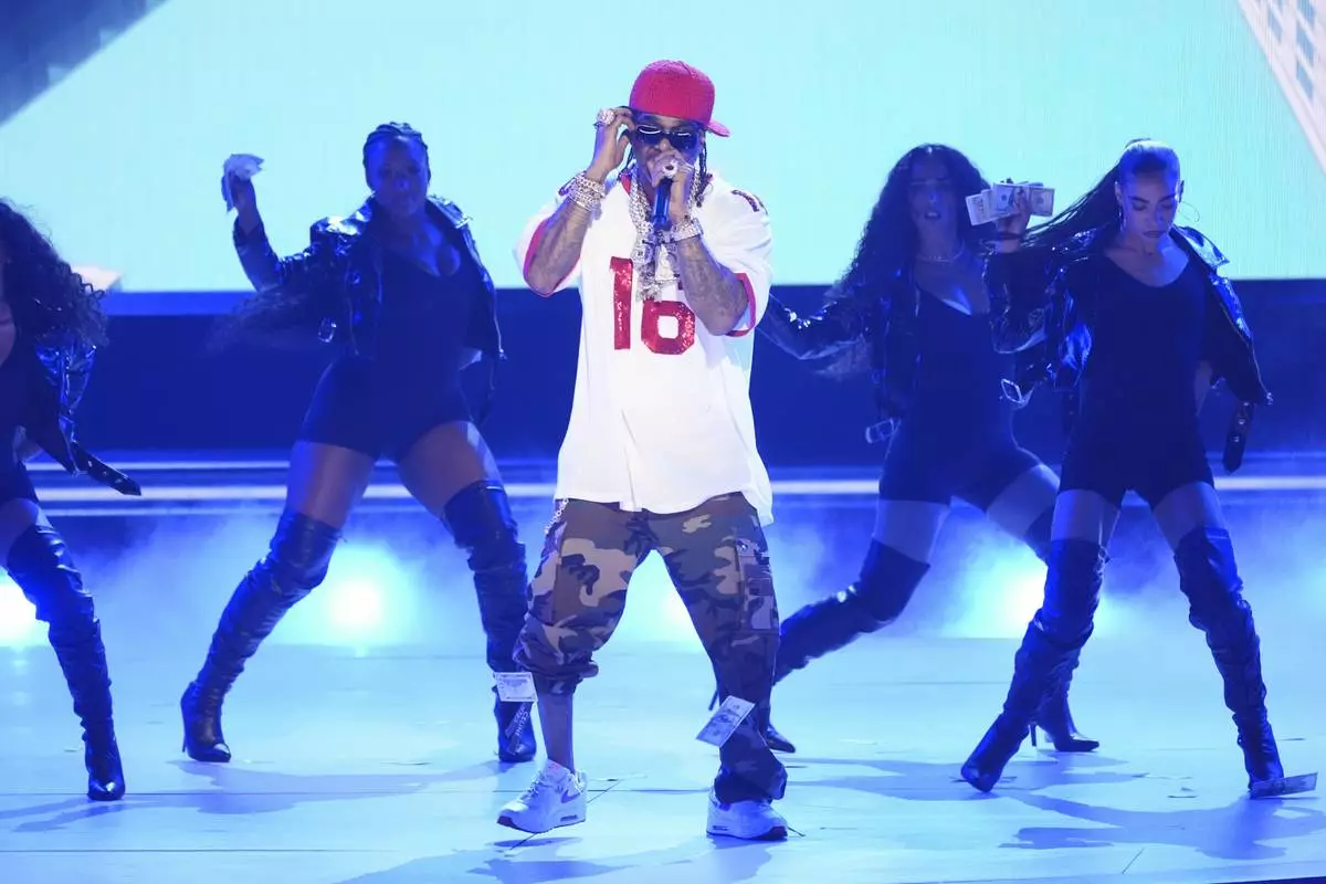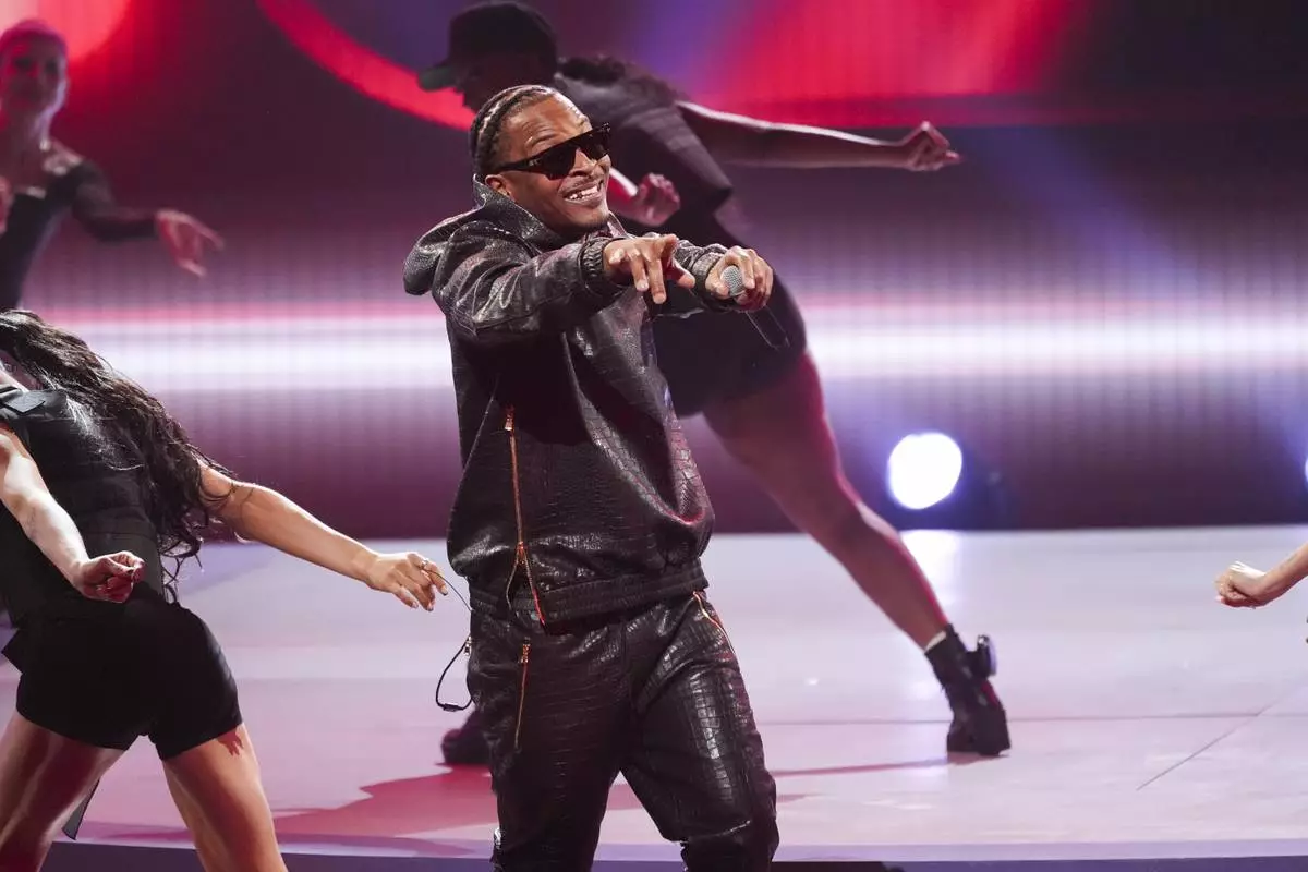 T.I. performs "Bring Em Out" during the BET Awards on Monday, June 9, 2025, at the Peacock Theater in Los Angeles. (AP Photo/Chris Pizzello)