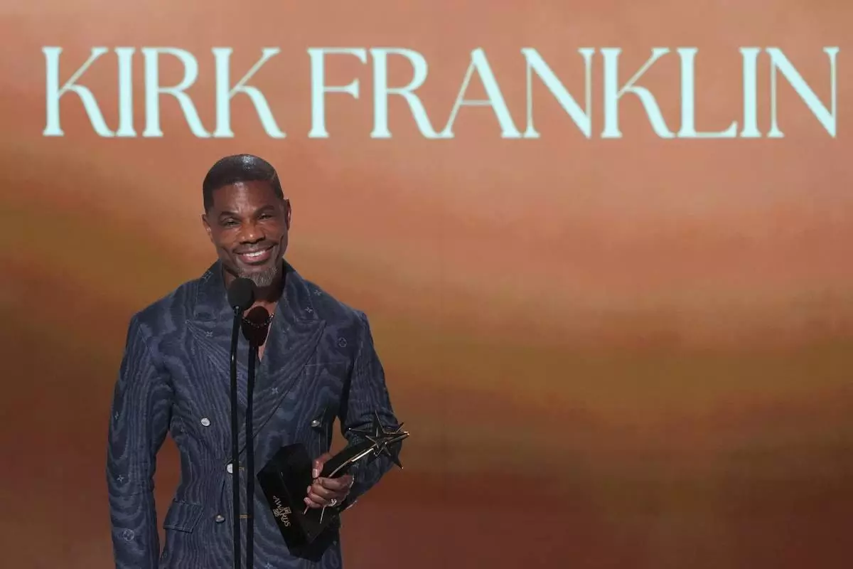 Kirk Franklin accepts the ultimate icon award during the BET Awards on Monday, June 9, 2025, at the Peacock Theater in Los Angeles. (AP Photo/Chris Pizzello)