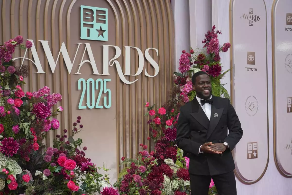 Kevin Hart arrives at the BET Awards on Monday, June 9, 2025, at the Peacock Theater in Los Angeles. (Photo by Jordan Strauss/Invision/AP)
