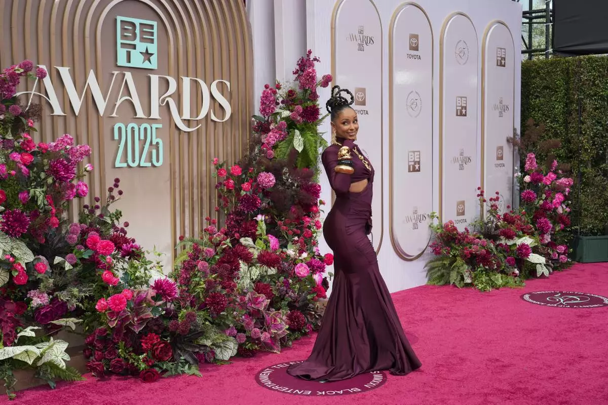 Porscha Coleman arrives at the BET Awards on Monday, June 9, 2025, at the Peacock Theater in Los Angeles. (Photo by Jordan Strauss/Invision/AP)