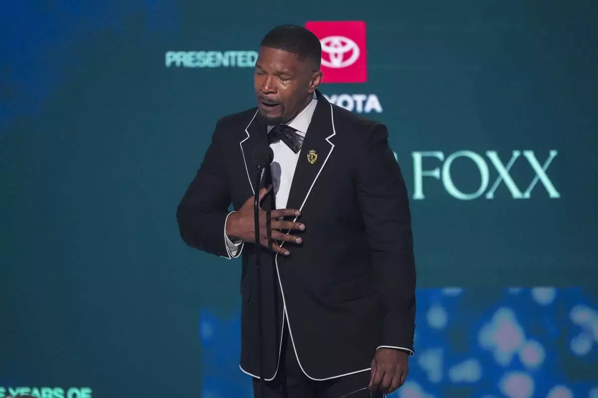 Jamie Foxx accepts the ultimate icon award during the BET Awards on Monday, June 9, 2025, at the Peacock Theater in Los Angeles. (AP Photo/Chris Pizzello)