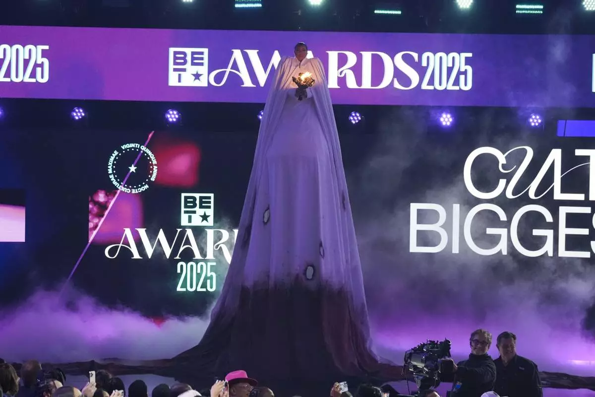Ledisi performs "BLKWMN" during the BET Awards on Monday, June 9, 2025, at the Peacock Theater in Los Angeles. (AP Photo/Chris Pizzello)