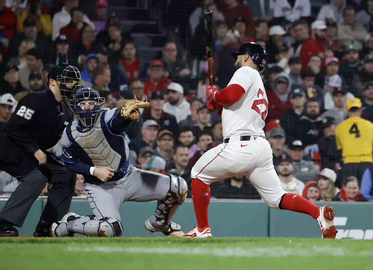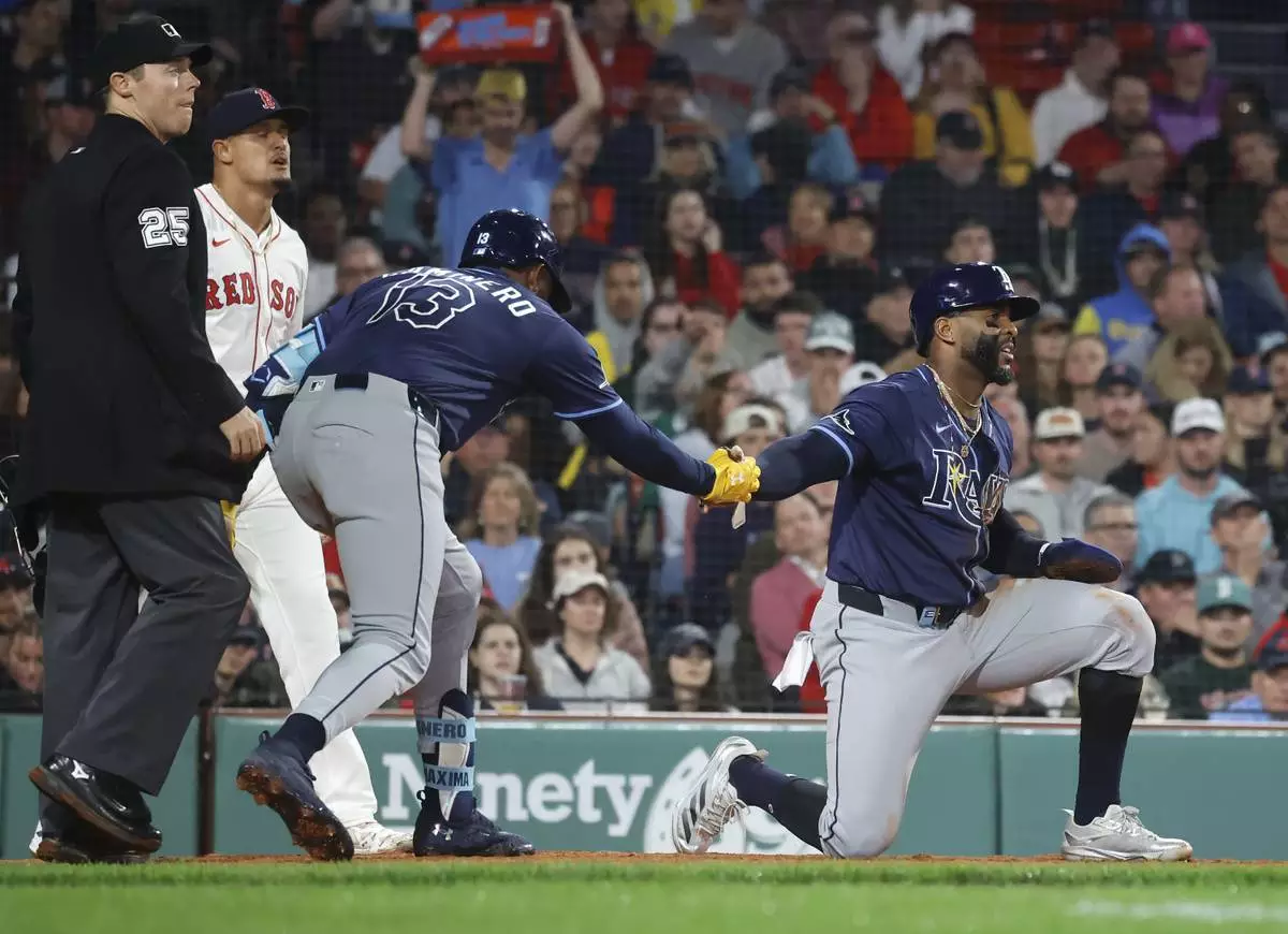 BOSTON (AP) — Jake Mangum had four hits, and Junior Caminero drew a bases-loaded walk in the 11th inning on Monday night as the Tampa Bay Rays took advantage of Boston mistakes to win 10-8 and spoil the debut of top Red Sox prospect Roman Anthony.
