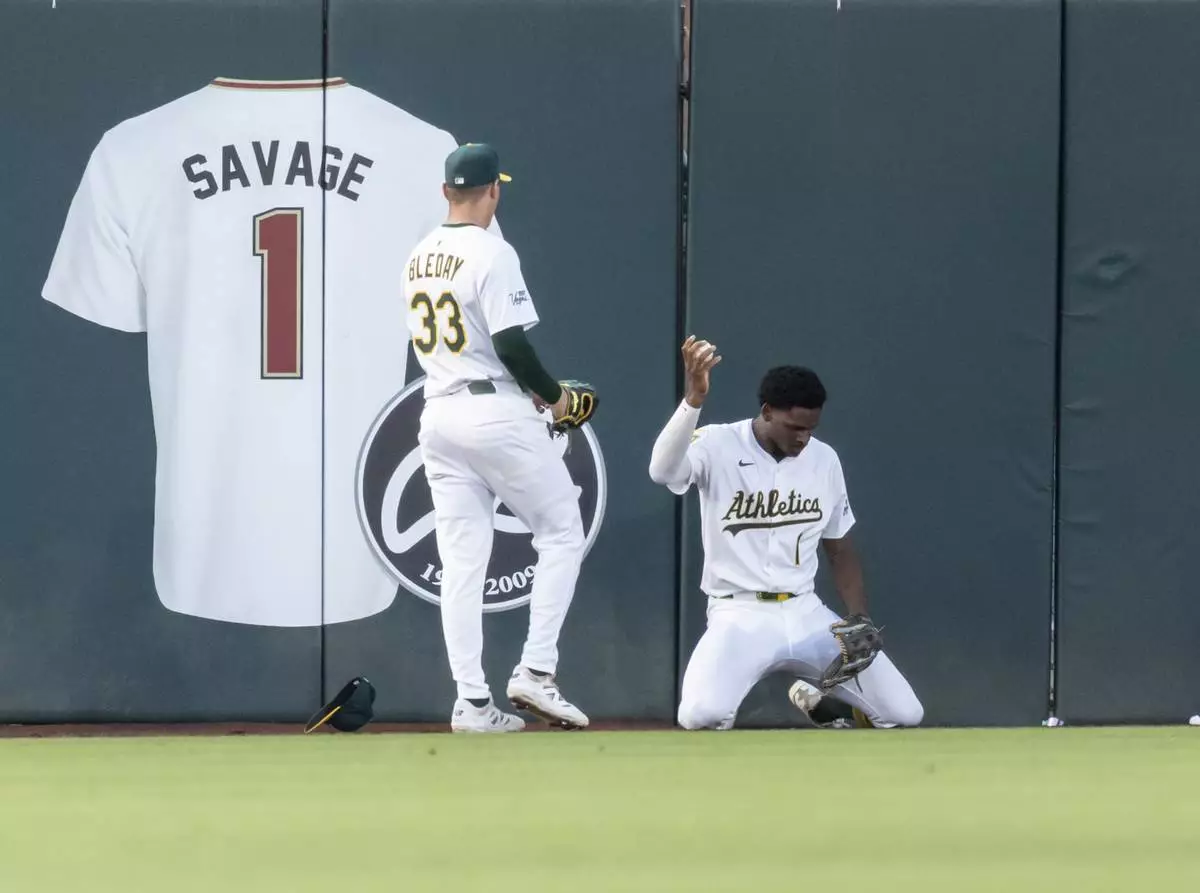 ANAHEIM, Calif. (AP) — Rookie center fielder Denzel Clarke made yet another spectacular catch for the Athletics, this time reaching high above the wall to rob the Los Angeles Angels' Nolan Schanuel of a home run on Monday night.