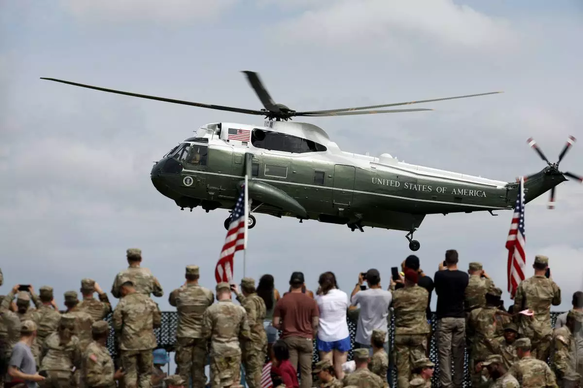 Before he spoke, Trump watched the U.S. Army demonstrate a missile strike, a helicopter assault and a building raid, a preview of the kind of show of American military might he's expected to display in the nation's capital for a massive military parade this weekend.