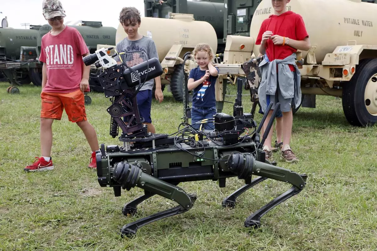 "Lone Wolf" a military robotic dog interacts with visitors at the America 250 Celebration at Fort Bragg in Fayetteville, N.C., Tuesday, June 10, 2025. (AP Photo/Karl DeBlaker)