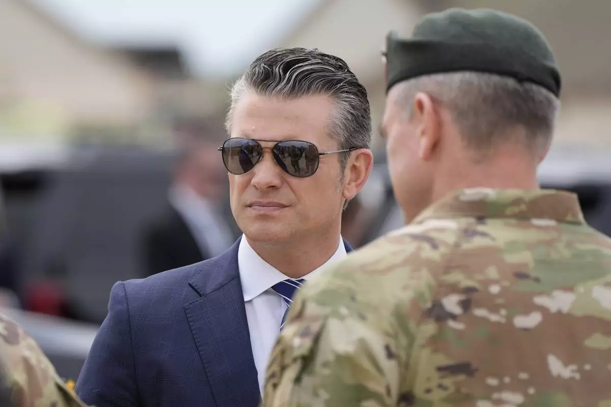 U.S Secretary of Defense Pete Hegseth speaks at Fort Bragg, N.C., Tuesday, June 10, 2025. (AP Photo/Karl DeBlaker)