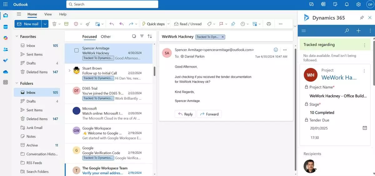 KMS Project CRM and Resco Inspections+ integrated with MS Outlook.