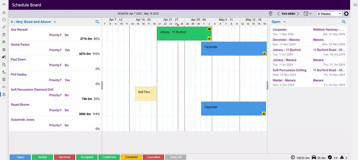 A schedule board component available in KMS Project CRM and Resco Inspections+ solution.