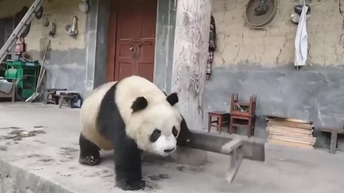 Th unexpected encounter occurred in Foping County of Hanzhong City, where the wild panda was filmed by a local resident ambling alongside a cottage near the Sanguanmiao Protection Station. The friendly but inquisitive panda was seen playfully patting away a wooden bench as it curiously explored the local surroundings.