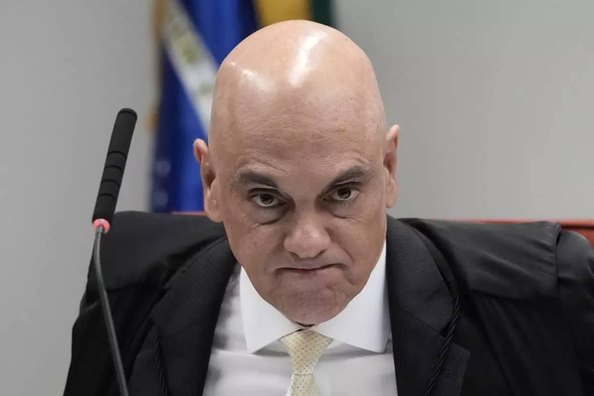 Brazilian Supreme Court Judge Alexandre de Moraes holds a trial for those charged in an alleged coup plot to keep former President Jair Bolsonaro in office after his 2022 election defeat, in Brasilia, Brazil, Tuesday, June 10, 2025. (AP Photo/Eraldo Peres)