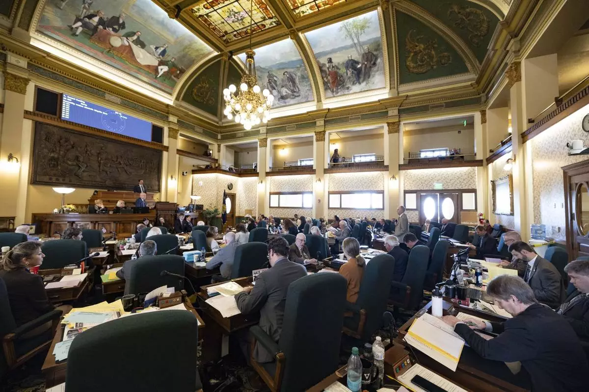 FILE - The Montana Senate debates a bill during transmittal week in the state Capitol, March 5, 2025, in Helena, Mont. (Thom Bridge/Independent Record via AP, File)