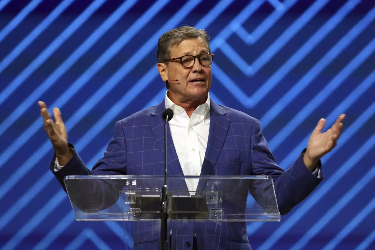 Kevin Ezell, president of the North American Mission Board speaks during the 2025 Southern Baptist Convention Annual Meeting, Tuesday, June 10, 2025, in Dallas. (AP Photo/Richard W. Rodriguez)
