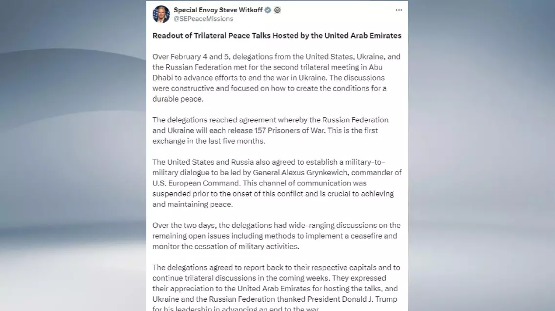 According to Ukraine, the talks were conducted trilaterally before moving to group consultations. Ukraine's National Security and Defense Council Secretary Rustem Umerov said the Ukrainian delegation sought a "dignified and lasting peace," without disclosing specific outcomes.