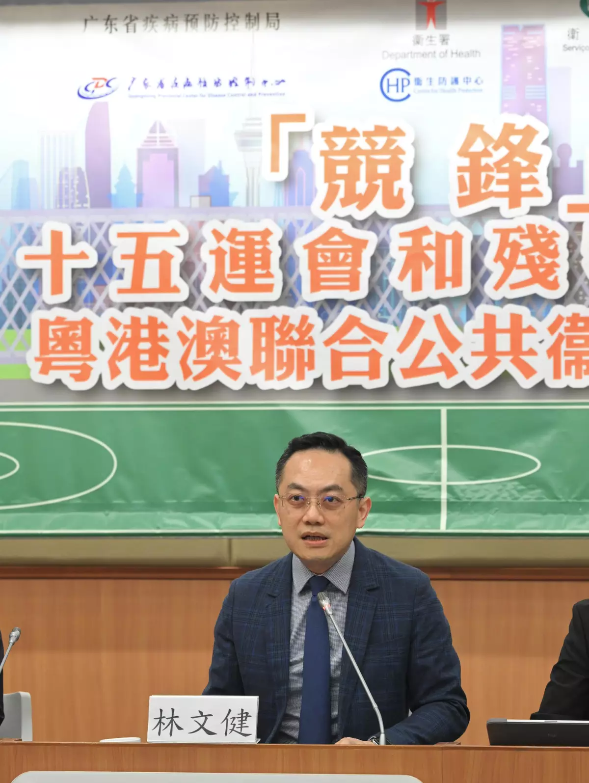 Before the commencement of the exercise, the Director of Health, Dr Ronald Lam, gave a speech. "The 15th NG, and NGD and NSOG are the largest and highest-level national multisport events in the country. It is of great strategic significance for the health authorities of Guangdong, Hong Kong and Macao to jointly organise this exercise on communicable disease prevention and control at the countdown stage of the opening of the Games. Through the simulation, we hope to achieve three major objectives: to strengthen the joint prevention mechanism of the three places; to build a solid risk identification defense; and to consolidate the foundation of event protection. This will allow the top athletes in the country to demonstrate the country's sports prowess under a 'zero significant outbreak, zero cross-infections' condition, and showcase the country's excellence in public health governance to the world," he said.