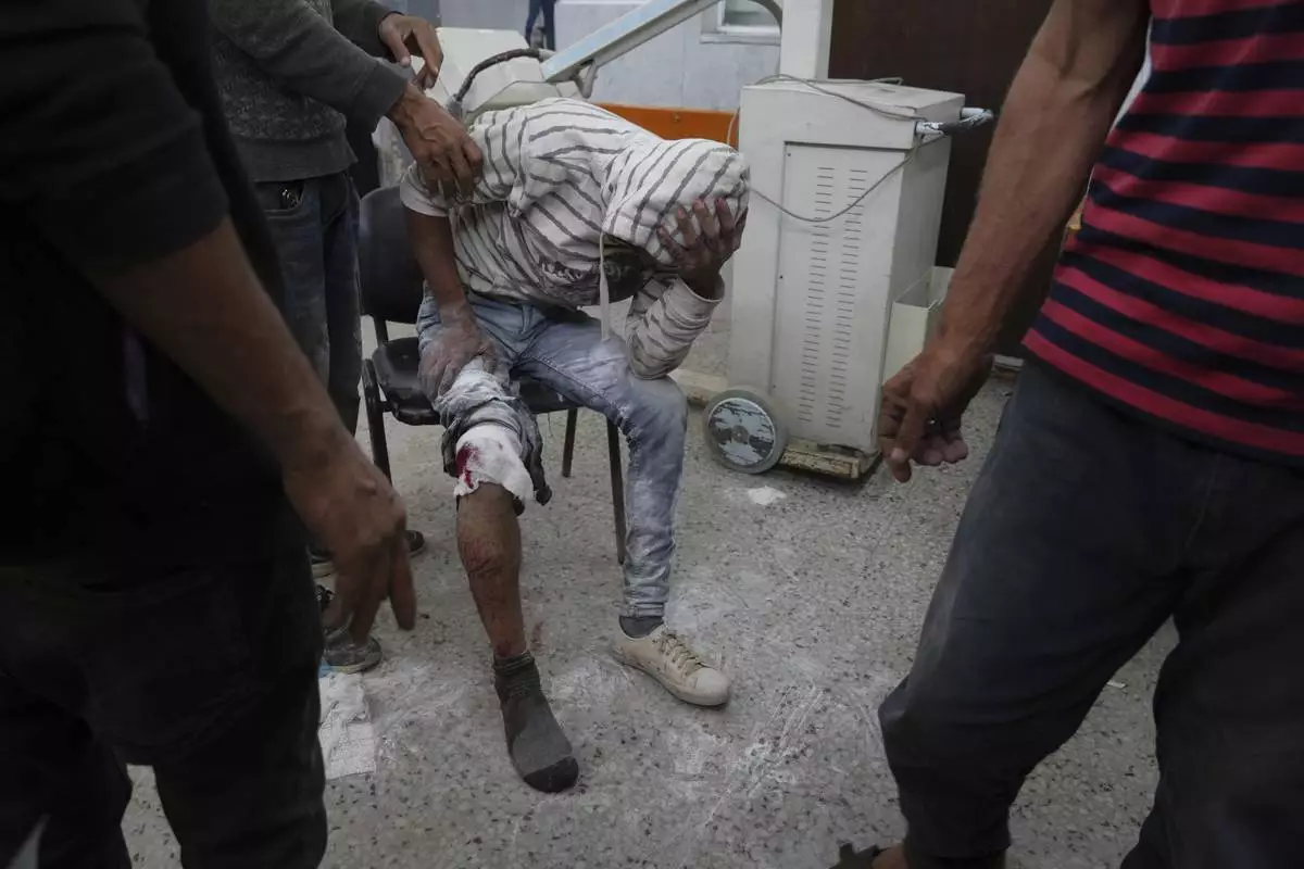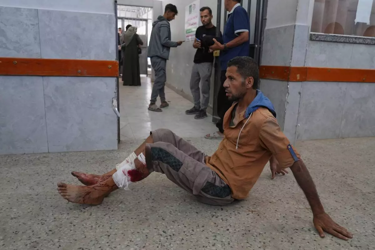 A Palestinian, who was injured last night while trying to get access to humanitarian aid, waits to be treated at the al-Shifa Hospital, in Gaza City, Wednesday, June 11, 2025. (AP Photo/Jehad Alshrafi)