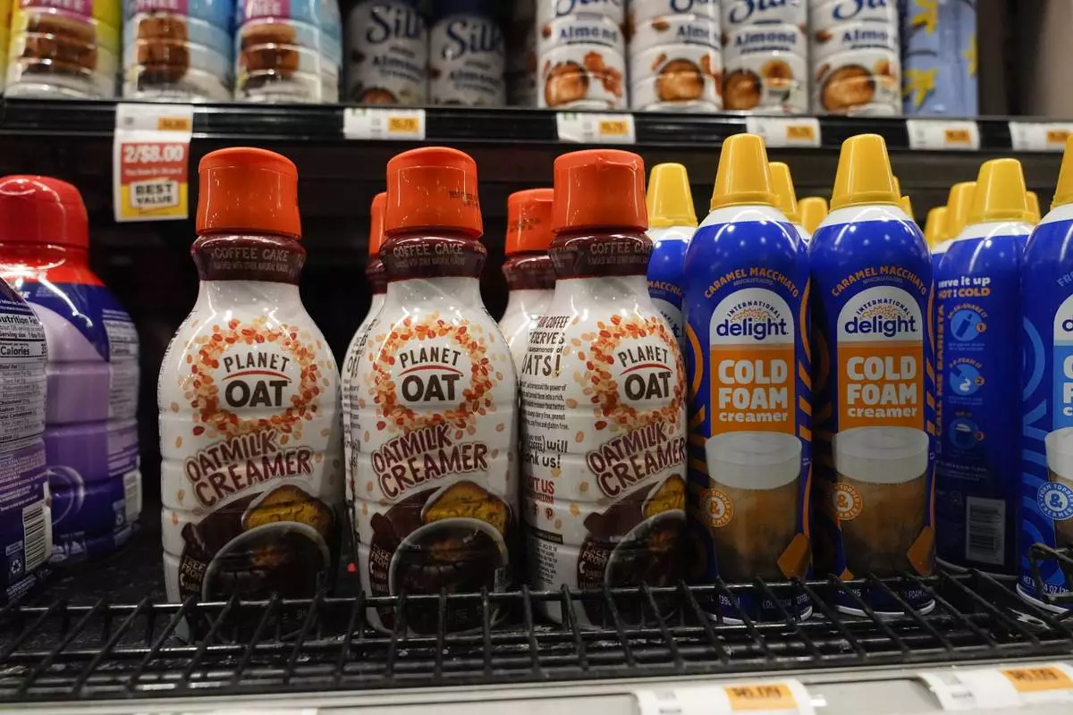 FILE - Dairy free creamer sit in a cooler at a grocery store in New Orleans, April 17, 2024. (AP Photo/Gerald Herbert, File)