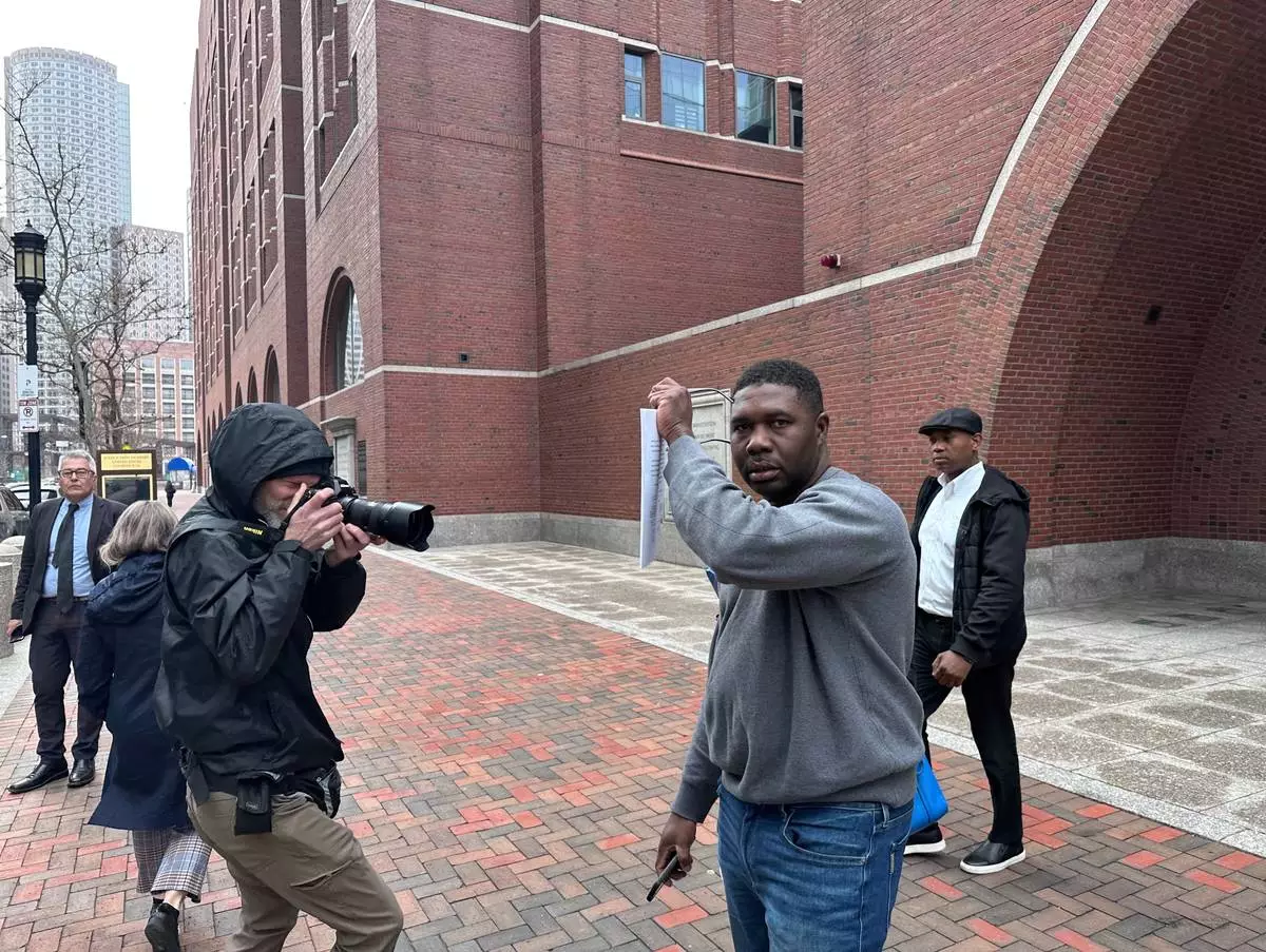 Edouardo St. Fort, right, leaves federal court after making a first appearance in connection with a New York corruption case, Tuesday, March 31, 2026, in Boston. (AP Photo/Michael Casey)