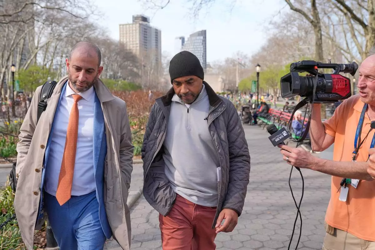 Jean Ronald Tirelus leaves a courthouse in New York, Tuesday, March 31, 2026. (AP Photo/Seth Wenig)