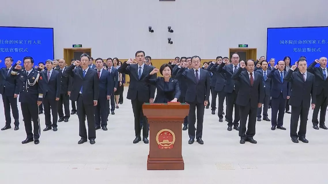 A total of 49 senior officials of 42 departments and units under China's State Council made pledge of allegiance to the Constitution at a ceremony on Wednesday.