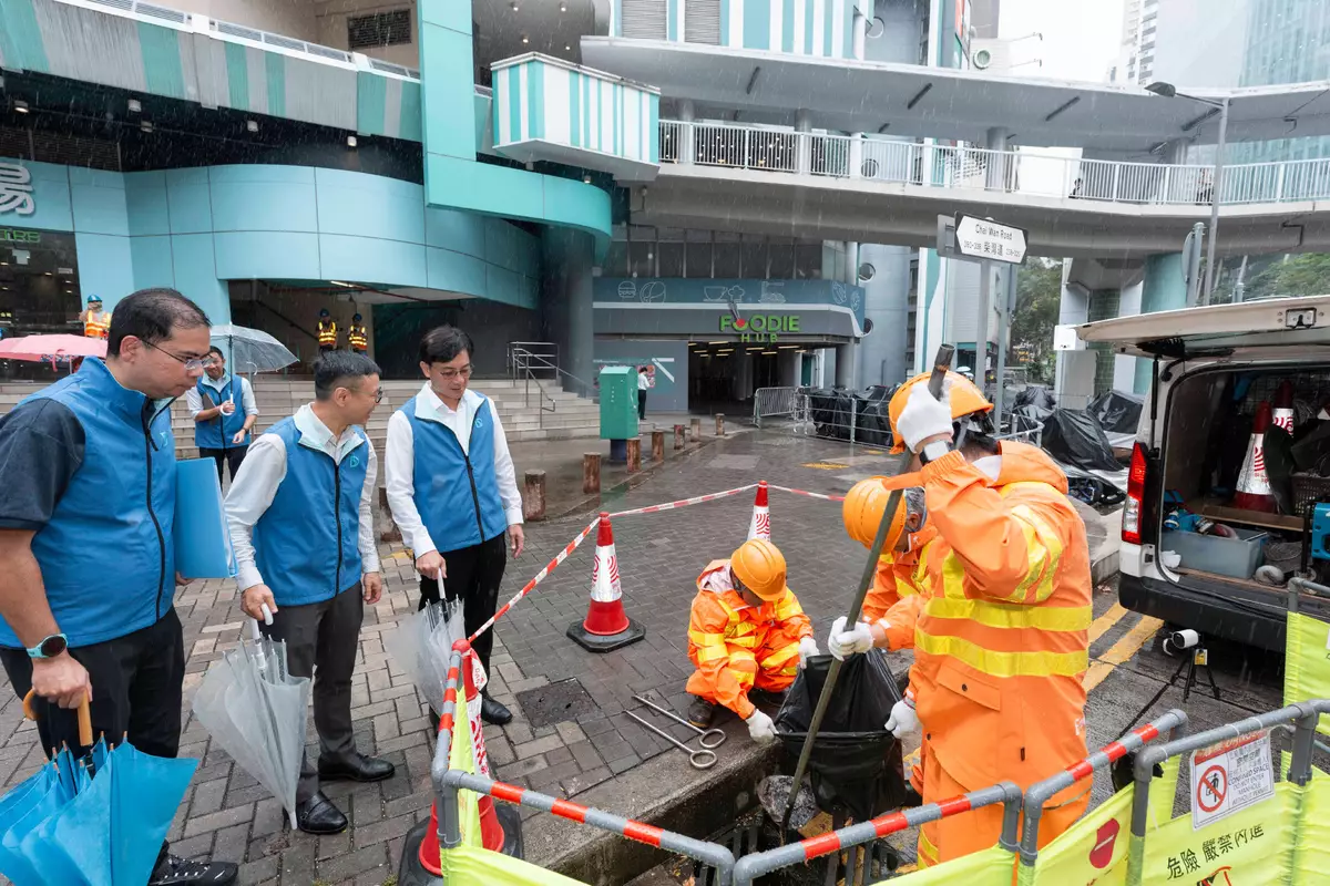 In light of the approaching Tropical Storm Wutip, the Director of Drainage Services, Mr Ringo Mok, held a meeting on June 11 with the senior management team of the department, followed by inspections of locations that had been hit by severe flooding in the past, such as Chai Wan, Heng Fa Chuen, and Wong Tai Sin, to learn about the implementation of flood prevention measures.