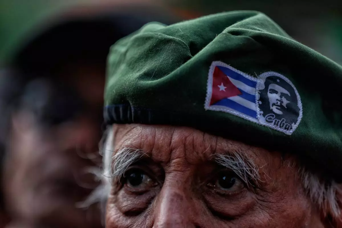 A man wears a hat with a Cuban flag and an image of Che Guevara at a rally in support of Colombian President Gustavo Petro's intention to call a referendum on labor reform, in Cali, Colombia, Wednesday, June 11, 2025. (AP Photo/Santiago Saldarriaga)