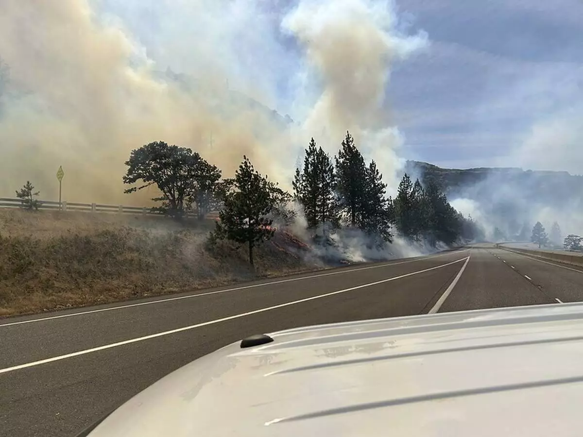 Washington state's transportation department said a separate brush fire resulted in the closure of 8 miles (13 kilometers) of State Route 14, which also runs along the Columbia River.