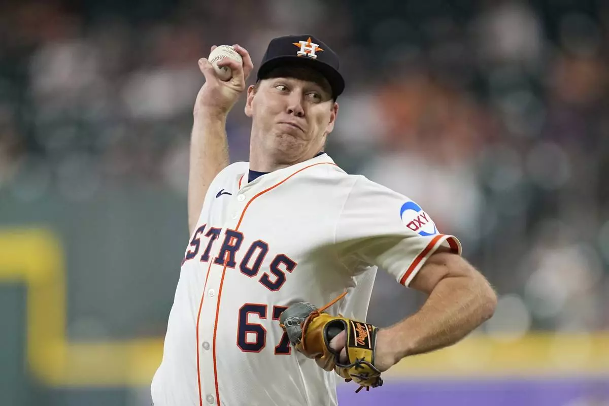 Houston Astros starting pitcher Ryan Gusto throws against the Chicago White Sox during the first inning of a baseball game Wednesday, June 11, 2025, in Houston. (AP Photo/David J. Phillip)