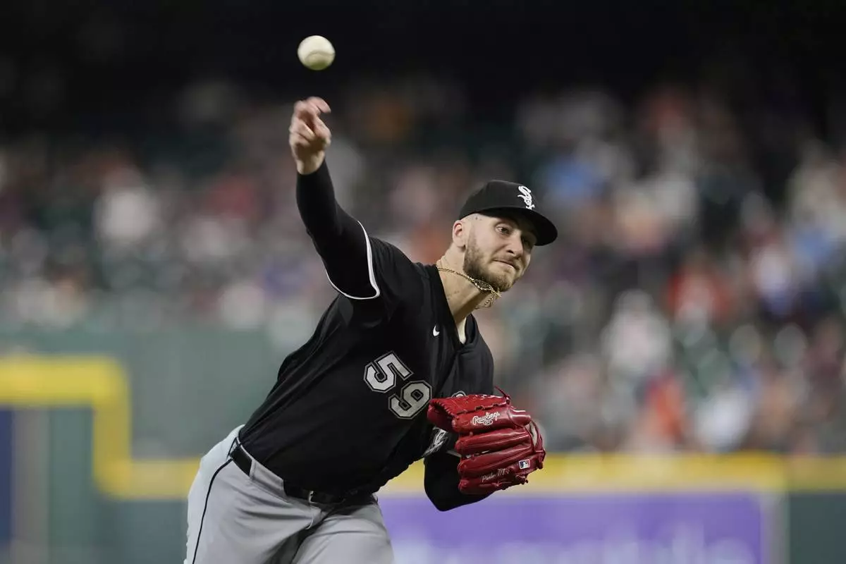 Chicago White Sox starting pitcher Sean Burke throws against the Houston Astros during the first inning of a baseball game Wednesday, June 11, 2025, in Houston. (AP Photo/David J. Phillip)