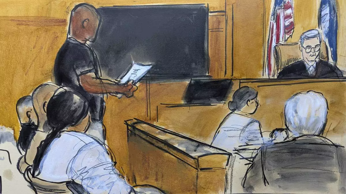 The Jury foreperson stands and reads the partial verdict during Harvey Weinstein's sexual misconduct trial in Manhattan criminal court, Wednesday, June 11, 2025, in New York. (Elizabeth Williams via AP)