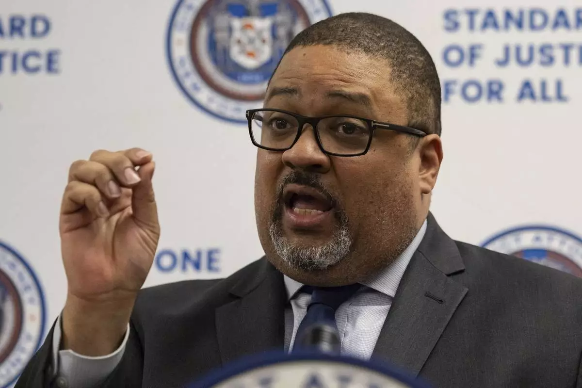 Manhattan District Attorney Alvin Bragg speaks during a news conference, Thursday, June 12, 2025 in New York. (AP Photo/Yuki Iwamura, Pool)