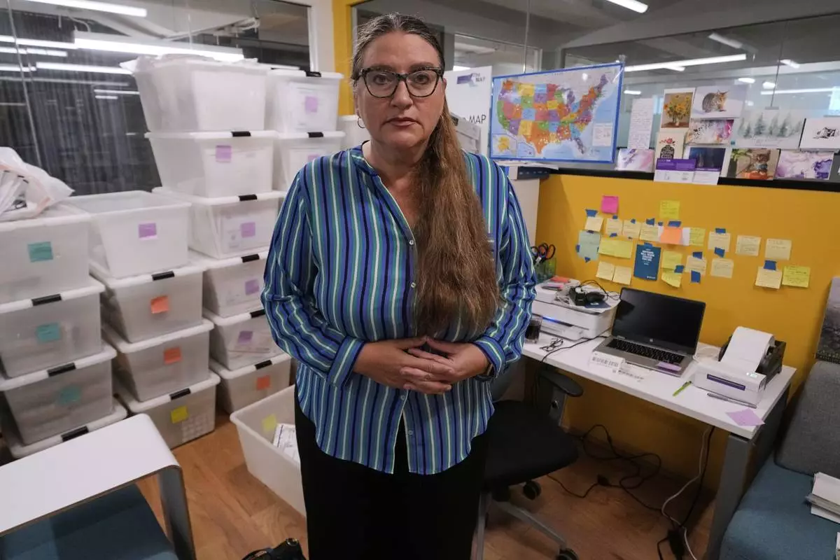 Dr. Angel Foster, co-founder of Massachusetts Medication Abortion Access Project, poses for a photo at the organization's headquarters, May 13, 2025, in Somerville, Mass. (AP Photo/Charles Krupa)