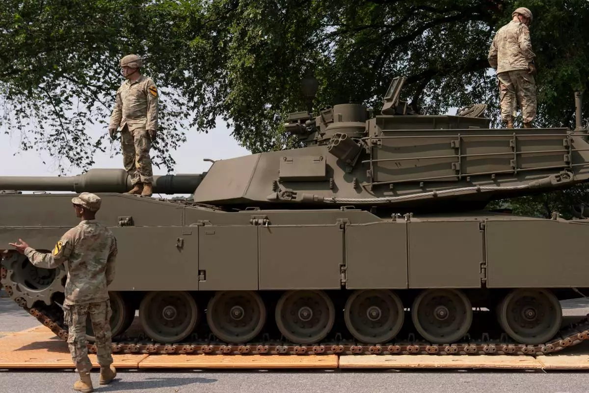 U.S. Army soldiers work on an M1 Abrams tank staged in West Potomac Park ahead of an upcoming military parade commemorating the Army's 250th anniversary and coinciding with Donald Trump's 79th birthday, Wednesday, June 11, 2025, in Washington (AP Photo/Julia Demaree Nikhinson)
