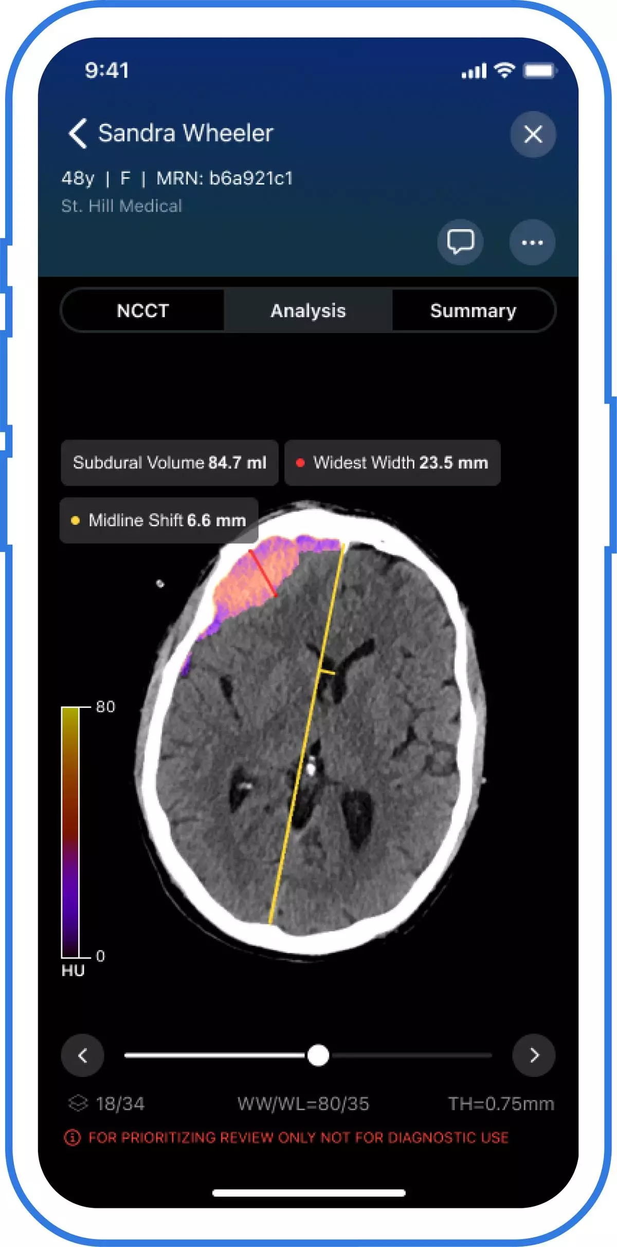 Chronic subdural hematoma (SDH) is projected to be the most common cranial neurosurgical condition in adults with projections suggesting approximately 60,000 new cases diagnosed annually in the United States by 2030 1 due to the aging population and more widespread use of anticoagulant and antiplatelet medications. Accurate quantification of subdural collections is essential for evaluating severity, monitoring progression, and informing timely treatment– especially for patients being considered for MMA embolization. Viz Subdural Plus supports clinicians in streamlining subdural collection analysis by automating what has traditionally been a manual and time-consuming measurement process. The software is available as part of the Viz.ai One platform, which is currently deployed across 1,800 hospitals and health systems.