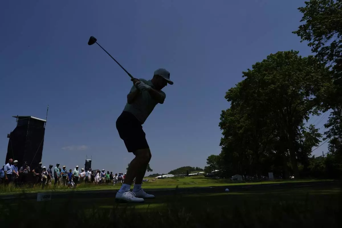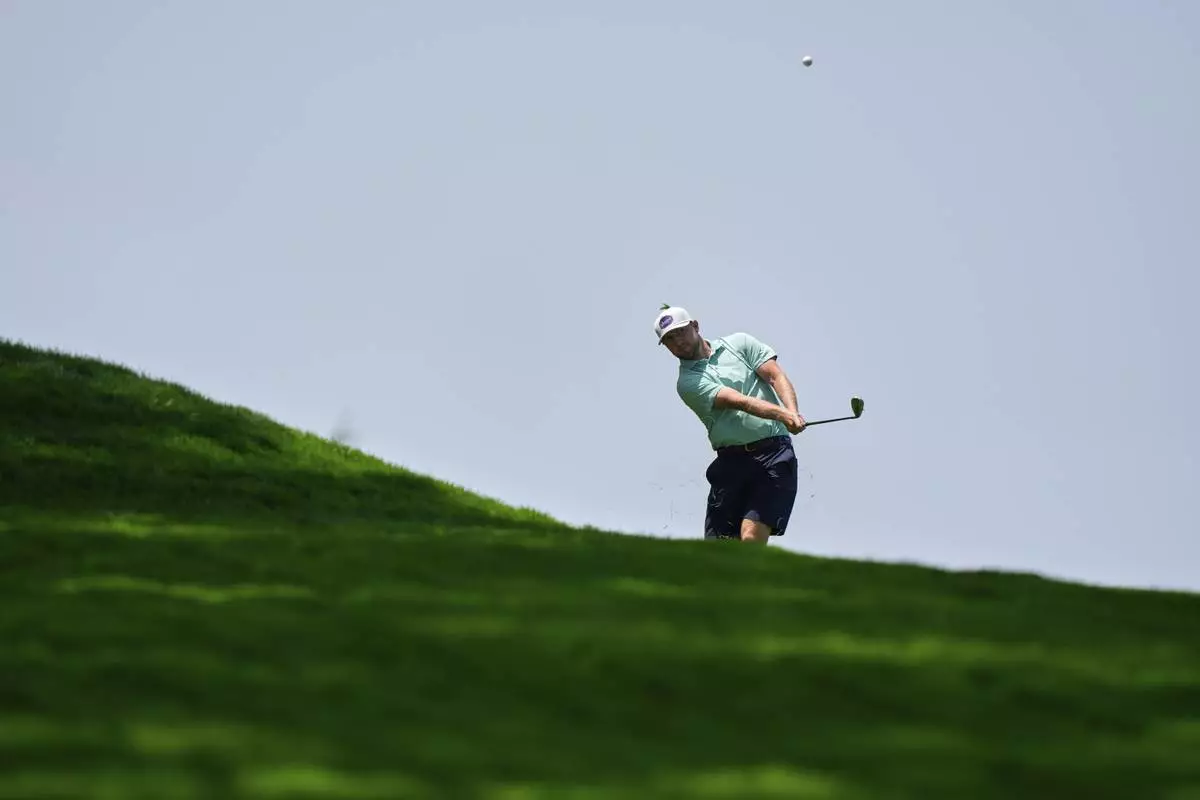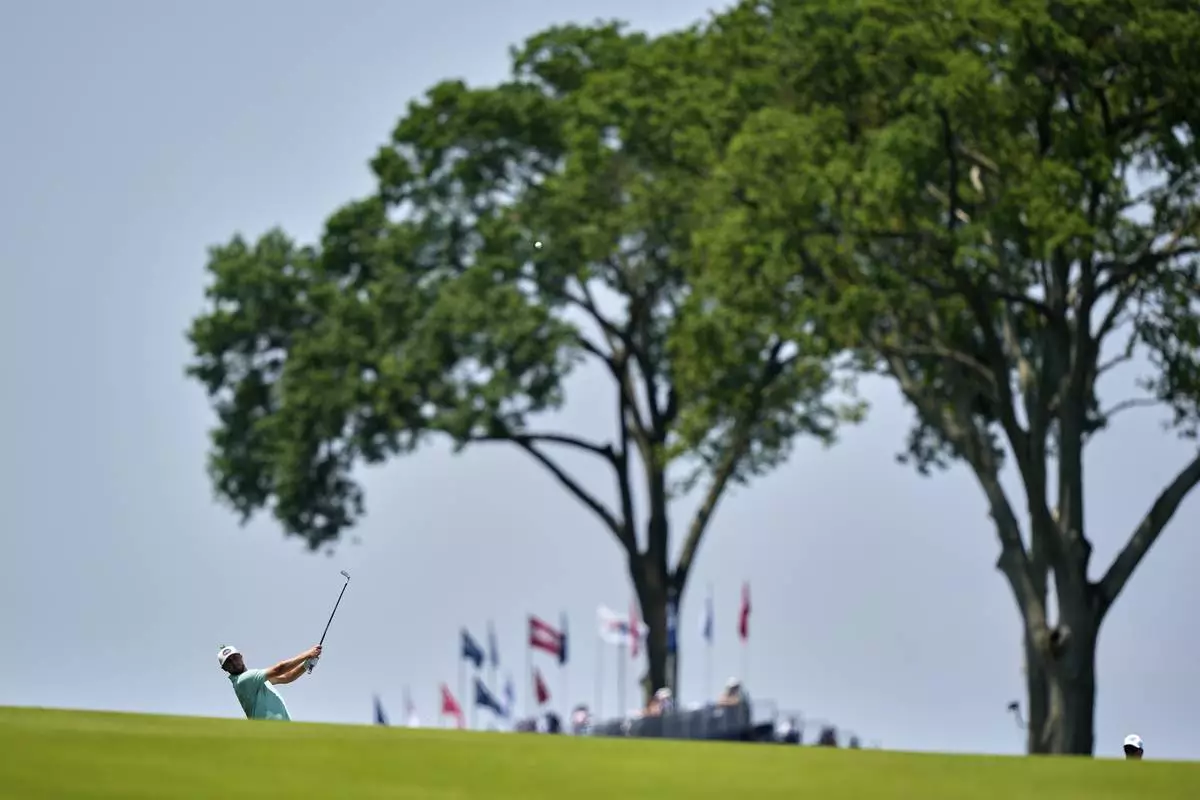 Alistair Docherty hits from the first fairway during a practice round ahead of the U.S. Open golf tournament at Oakmont Country Club Wednesday, June 11, 2025, in Oakmont, Pa. (AP Photo/Charlie Riedel)