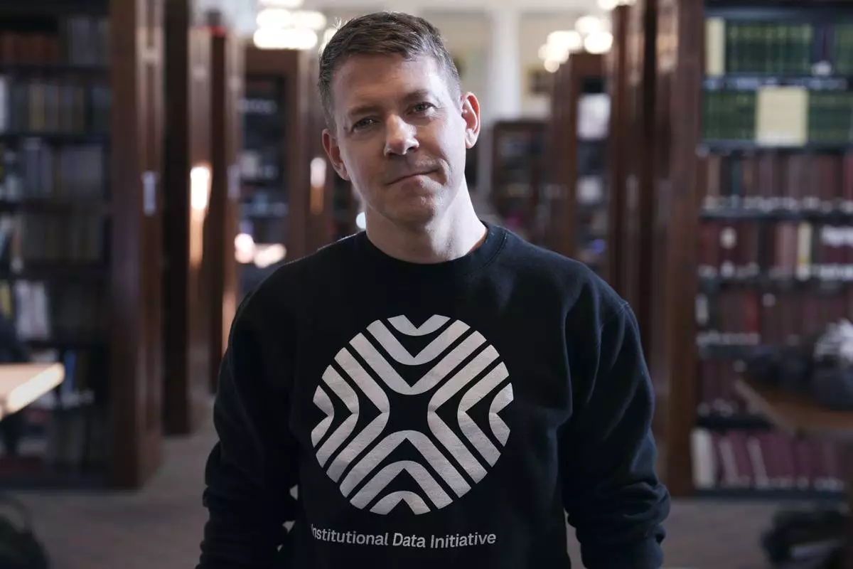Greg Leppert, executive director at the Institutional Data Initiative, poses at Langdell Hall, which houses the Harvard Law School library, Wednesday, Feb. 26, 2025, in Cambridge, Mass. (AP Photo/Charles Krupa)
