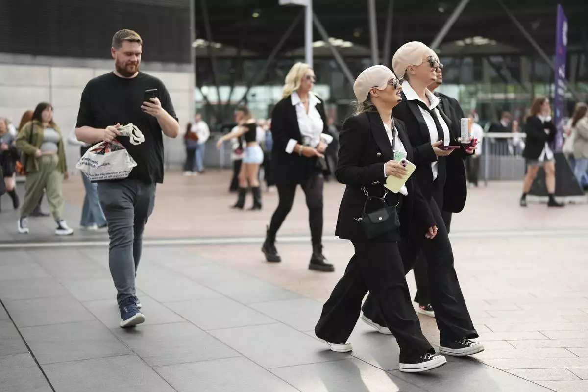 Fans gather in front of the O2 Arena prior to a performance by Pitbull on Monday, June 9, 2025, in London. (Photo by Scott A Garfitt/Invision/AP)