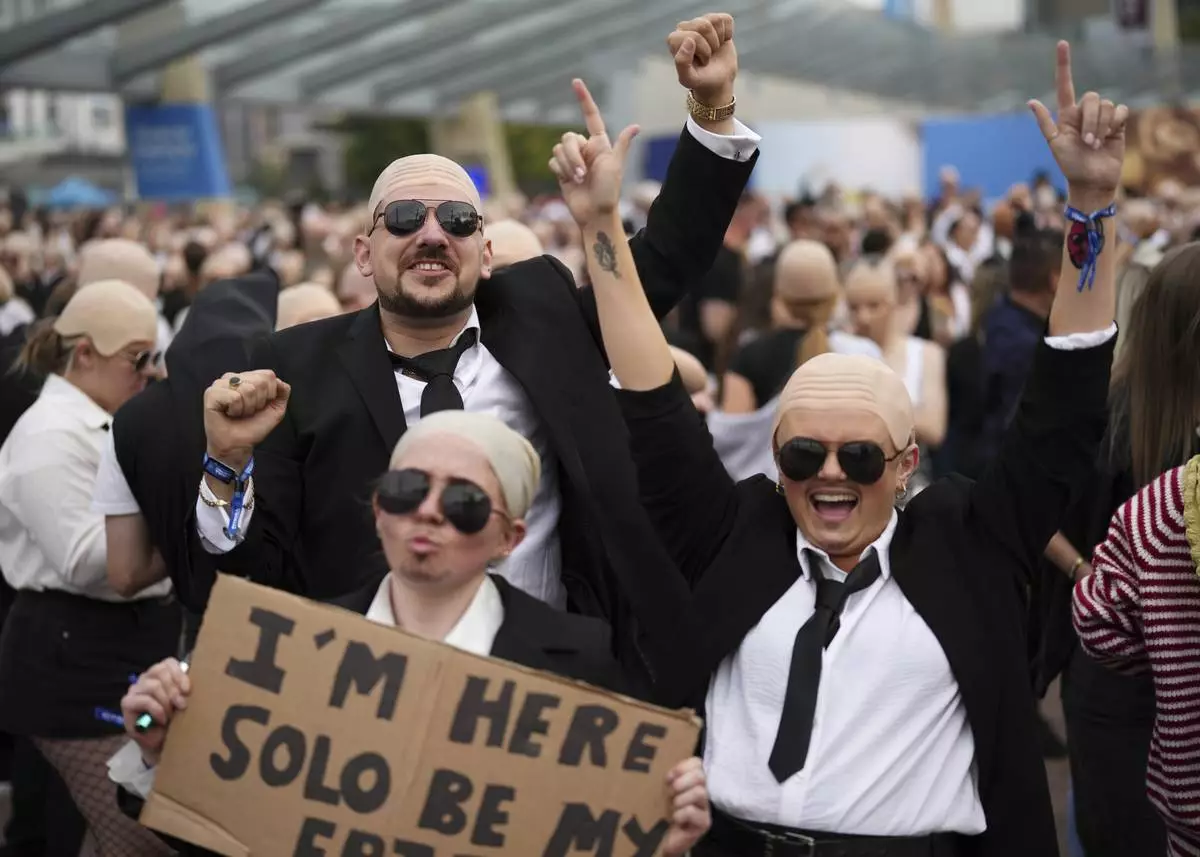 Fans dance in front of the O2 Arena prior to a performance by Pitbull on Monday, June 9, 2025, in London. (Photo by Scott A Garfitt/Invision/AP)
