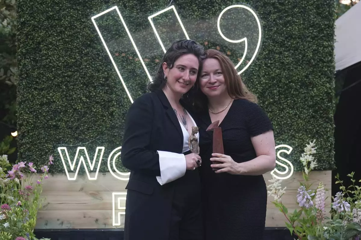 Winner of the Women's Prize for Fiction Rachel Clarke for her book 'The Story of a Heart', right, and Winner of the Women's Prize for Non Fiction Yael van Der Wouden, who wrote 'The Safekeep' pose for the media in London, Thursday, June 12, 2025. (AP Photo/Joanna Chan)