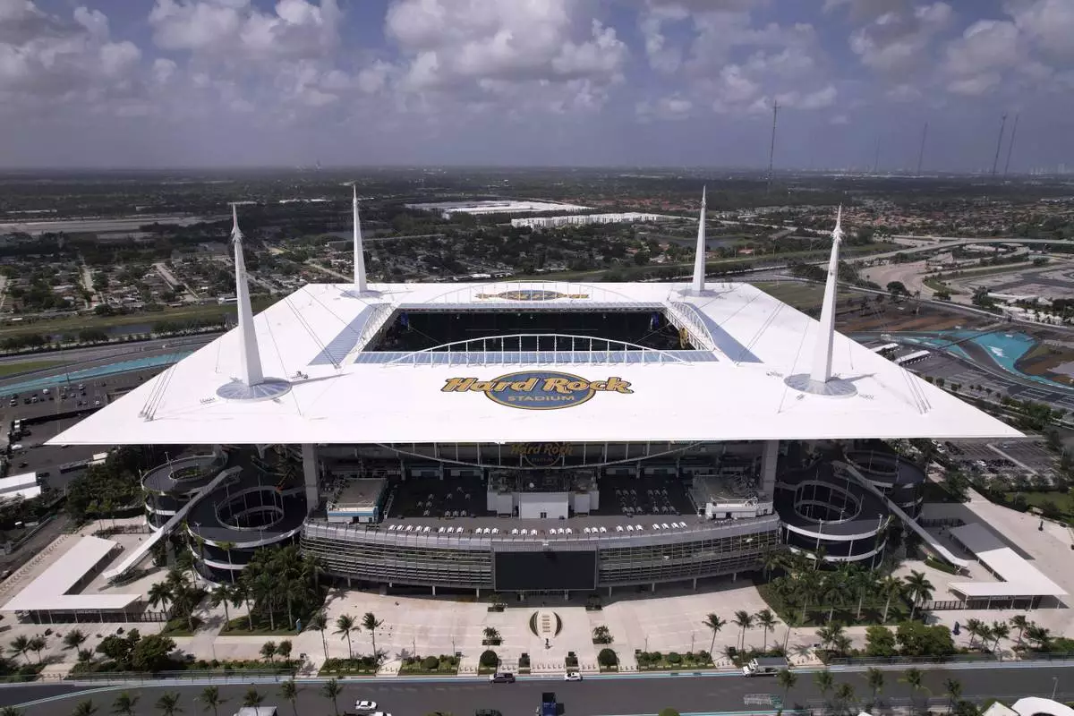Hard Rock Stadium is viewed two days ahead of the scheduled opening match of the Club World Cup soccer tournament Thursday, June 12, 2025, in Miami Gardens, Fla. (AP Photo/Rebecca Blackwell)