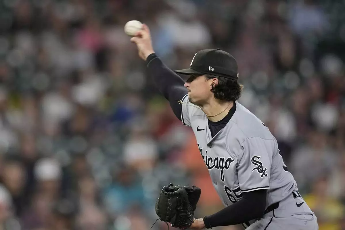 Chicago White Sox starting pitcher Davis Martin throws against the Houston Astros during the first inning of a baseball game Thursday, June 12, 2025, in Houston. (AP Photo/David J. Phillip)