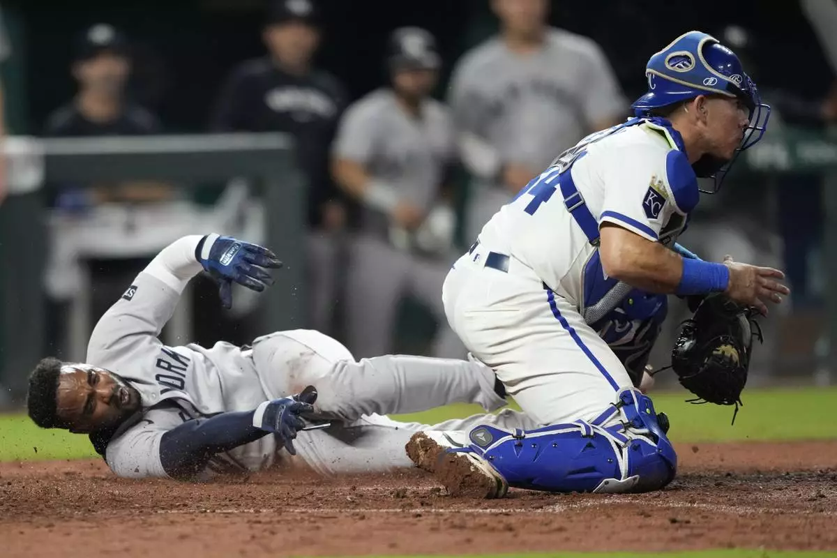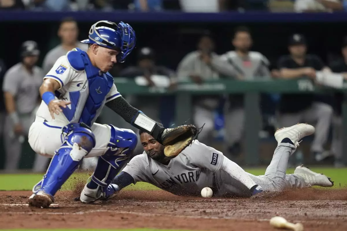 KANSAS CITY, Mo. (AP) — Pablo Reyes stumbled, stopped and still scrambled home safely on a wild play in the eighth inning Thursday night, taking advantage of a throwing error by reliever Lucas Erceg to give the New York Yankees a 1-0 victory over the Kansas City Royals.